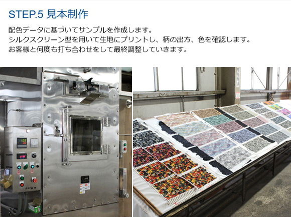 浜田染工では、企画から納品まで一貫しての生産体制を取っております。途中経過などの報告などは すべて、弊社で確認が可能となり、出来上がるまでの不安を弊社で解決することができます。